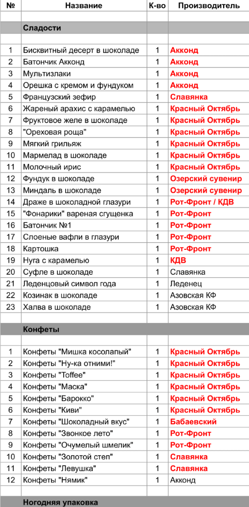 1. Проверить, можно ли внести изменения в состав подарка. Если нет, то скорее всего наборы были собраны еще летом из конфет, произведенных еще раньше
